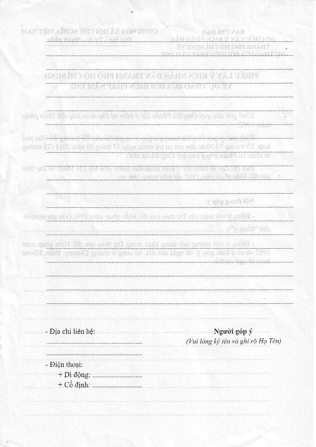 Dưới đây là toàn văn bản tài liệu hiếp pháp của đảng cộng sản đã được gửi đến các hộ dân, kèm theo bản mẫu lấy ý kiến ép buộc nhân dân đồng ý và tham gia:
