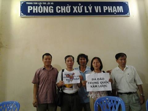 Cho đến khoảng 8 giờ tối hôm nay, vẫn còn một số người bị công an tạm giữ tại Hà Nội. Một điểm đáng nói khác là ngày cả khi bị bắt về trại Lộc Hà, những người bị bắt vẫn giương biểu ngữ, hô khẩu hiệu phản đối Trung Quốc.