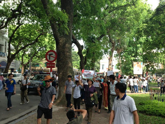 Cuộc biểu tình lần này bắt đầu khoảng 8 giờ sáng ở Hà Nội và kéo dài chừng 2 tiếng đồng hồ.