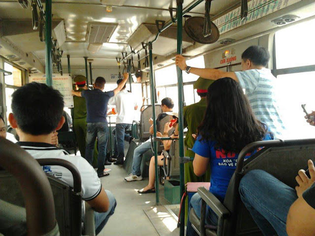 09h13: JB Nguyễn Hữu Vinh đã được đưa lên xe bus.