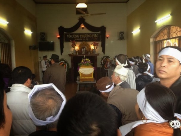 Vào chiều thứ Năm, 27 tháng 2, 2014 bà Nguyễn Thị Nga, vợ của nhà văn Nguyễn Xuân Nghĩa đang bị đảng bỏ tù vì phản đối tàu cộng xâm lược đã đến viếng thăm. Bà mang theo một số vòng hoa phúng điếu của Hội Phụ nữ Nhân quyền, đài Đáp Lời Sông Núi nhờ chuyển. Khi xe vừa xuống lập tức côn an đã xông đến, giật xé những dòng chữ ghi tên các hội, nhóm – chỉ chừa lại 2 chữ “Kính viếng”.