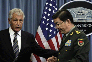 Ông Bộ trưởng quốc phòng Hoa Kỳ phát biểu trước khoảng 120 đại tá và sĩ quan tham mưu Trung Quốc tại Đại Học Quân Sự của quân đội Trung Quốc rằng cả thế giới đều không hài lòng với sự kiện Trung Quốc bênh vực Bắc Hàn cũng như các hành động mang tính đe dọa, chèn ép những nước nhỏ hơn ở Đông Nam Á. Một sĩ quan trong cử tọa đứng lên đáp lời rằng Hoa Kỳ sợ sự lớn mạnh của Bắc Kinh, dùng các nước Đông Nam Á để ngăn cản bước tiến Trung Quốc chỉ vì lo âu sẽ có ngày không thể đương đầu với một cường quốc Hoa Lục.