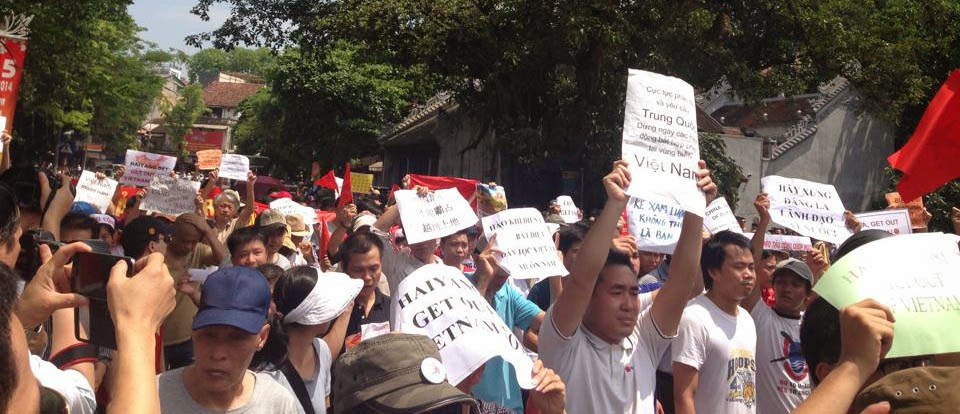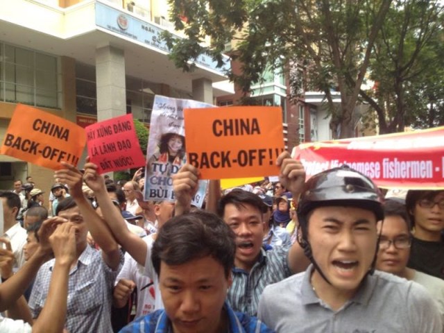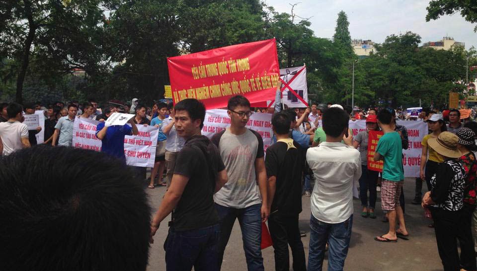 Tại Hà Nội: Ước tính có khoảng 1000 người đã tập trung hô khẩu hiệu trước đại sứ quán Trung Quốc.