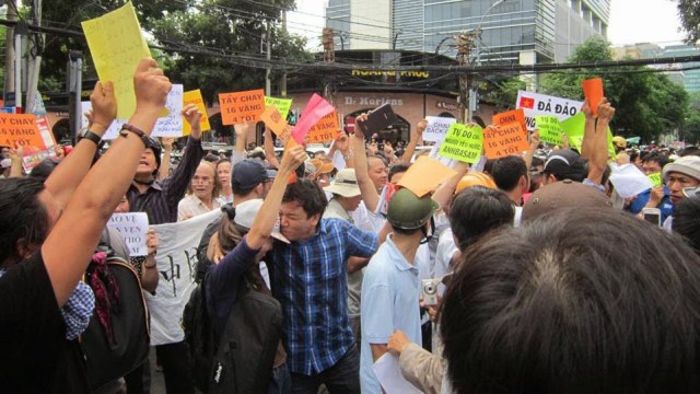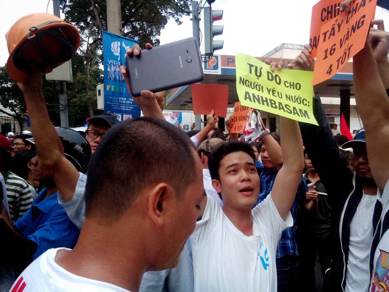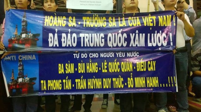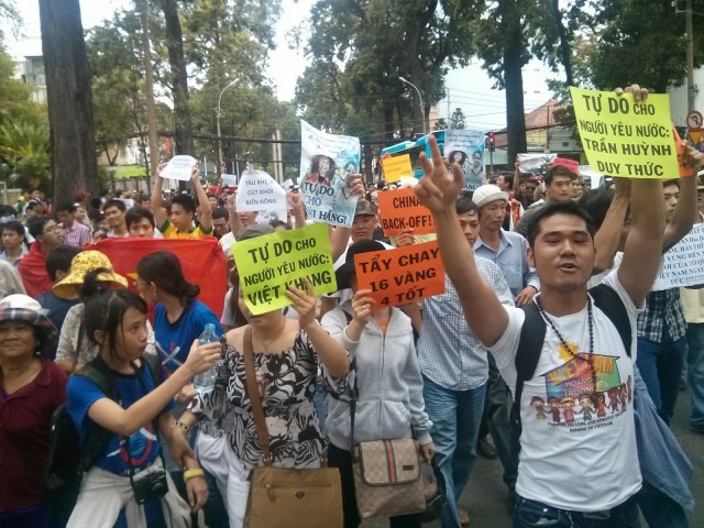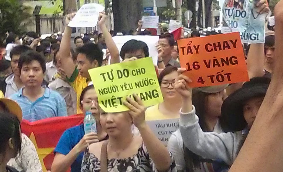 Tại cuộc biểu tình chống Trung Quốc tại Sài Gòn, nhiều biểu ngữ đòi trả tự do cho người yêu nước công khai xuất hiện cùng với những tiếng hô vang dội ‘Tự do cho người yêu nước’ – ‘Tự do’ (Video: CTV Danlambao)