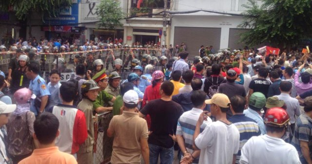 ngăn không cho đoàn biểu tình tiến về tòa tổng lãnh sự quán Trung Quốc