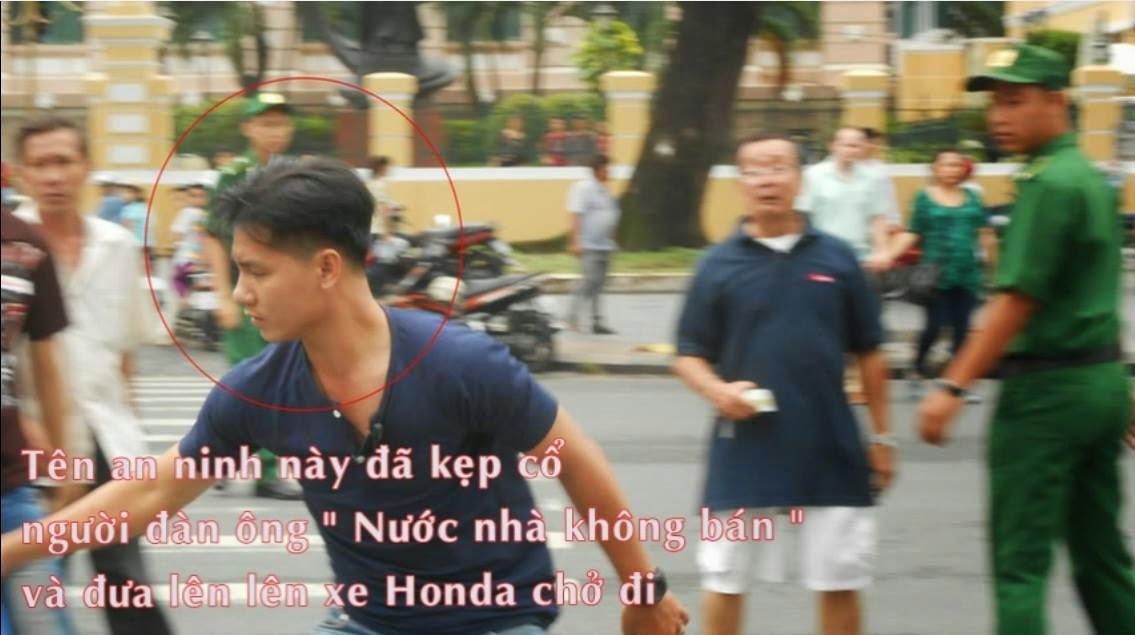 Anh Tuyến Xích Lô bị áp giải đưa về giam giữ tại trụ sở công an phường Bến Thành (Quận 1). An ninh thành phố được huy động để làm các thủ tục ‘giảng bài’ về tình hình Biển Đông, nêu lên các lý luận về mối quan hệ Việt – Trung. Sau đó, họ cáo buộc hành động của anh Tuyến là ‘gây rối trật tự công cộng’ và bắt đầu tra hỏi.