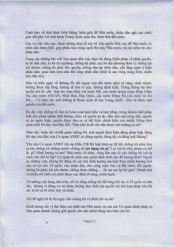 Cảnh báo về tình hình biển Đông, biên giới để Nhà nước, nhân dân nêu cao cảnh giác đối phó với tình hình Trung Quốc xâm lấn, thôn tính đất nước.