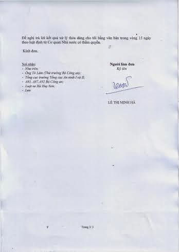 V/v: khởi tố bắt oan sai đối với chồng tôi là Nguyễn Hữu Vinh, đề nghị trả tự do ngay