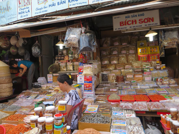 Một người buôn hải sản khác tên Nguyệt, hiện đang bán hải sản tại chợ Đầm, Nha Trang, chia sẻ thêm: “Ở Nha Trang, nhiều loại lắm, từ cá ngựa, bào ngư, mực một nắng… Hàng thì tùy từng chỗ, có nhiều hàng phải lấy từ Phan Thiết. Một số thì lấy từ ngư dân nhưng mà muốn ngon thì phải đi ngược ra Vạn Giã..”