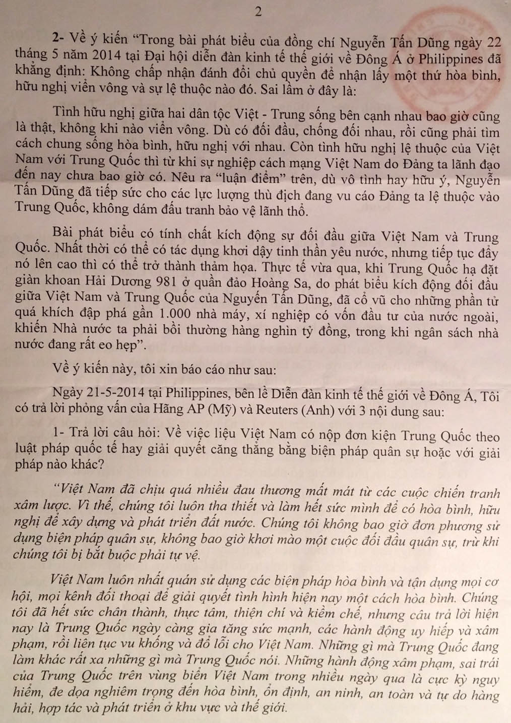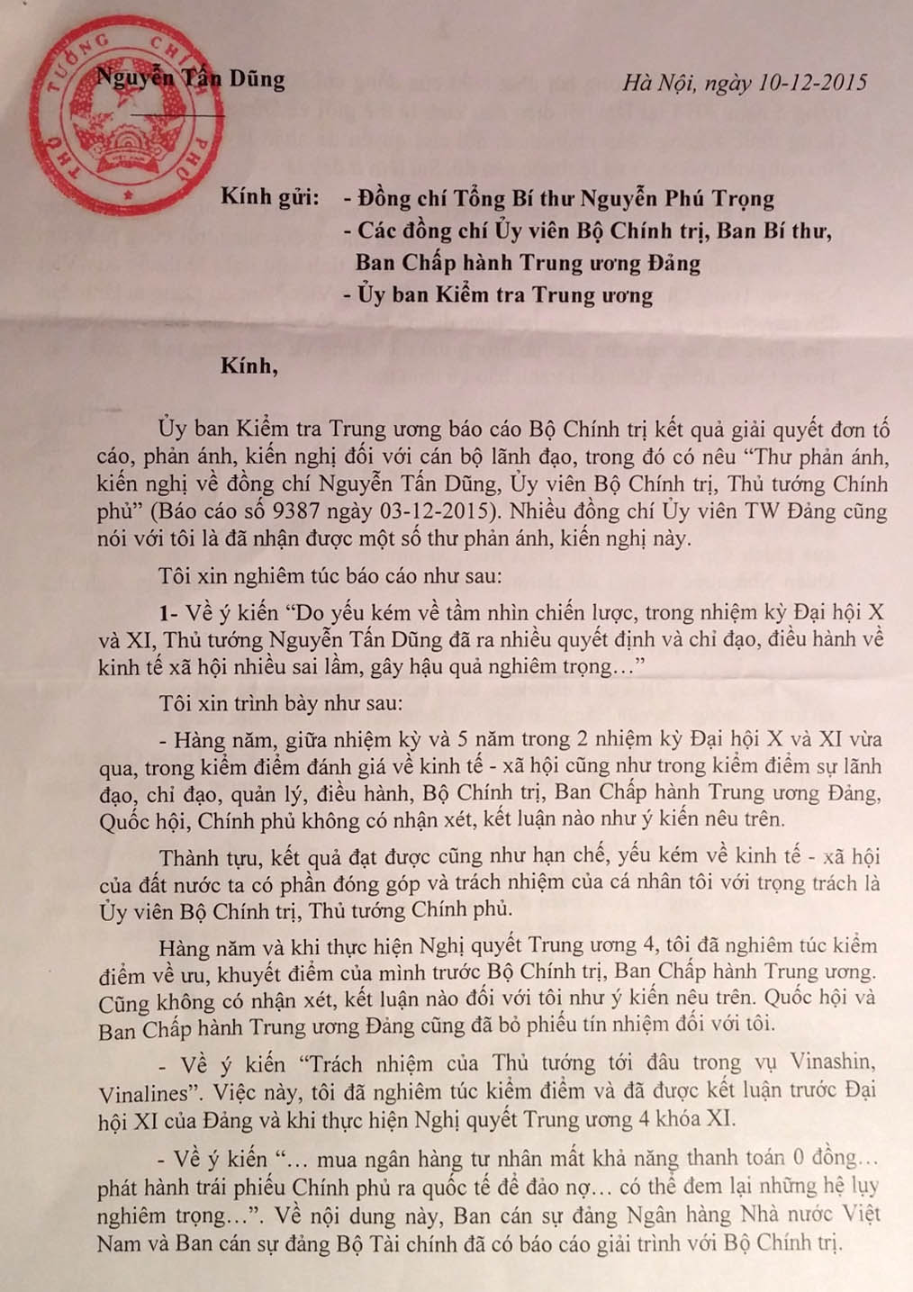 Tài liệu được cho là “Thư của TT Nguyễn Tấn Dũng gửi TBT Nguyễn Phú Trọng và Bộ Chính trị”