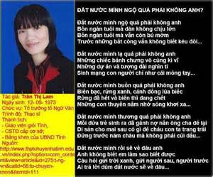 Cô giáo Trần Thị Lam và bài thơ ‘Đất nước mình ngộ quá phải không anh’ Đăng bởilactanng05/07/201605/14/2016Đăng trongCộng Sản VN, Diễn Đàn Chính Trị, Việt Nam https://youtu.be/rLt8UKR1MZM https://youtu.be/P81nKORV9P4 Chia sẻ: Nhấp để chia sẻ trên X (Mở trong cửa sổ mới) X Nhấn vào chia sẻ trên Facebook (Mở trong cửa sổ mới) Facebook Thích Đang tải... Có liên quan