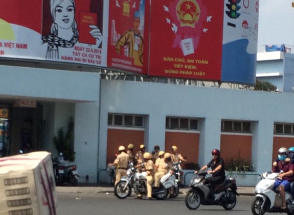 Sáng 15/5/2016, các lực lượng đàn áp được huy động tràn ngập tại khu vực trung tâm thành phố. Các ngã tư, giao lộ tại tuyến phố đi bộ Nguyễn Huệ, chợ Bến Thành, công viên Quách Thị Trang… đều có chốt chặn, an ninh thường phục trà trộn khắp nơi.