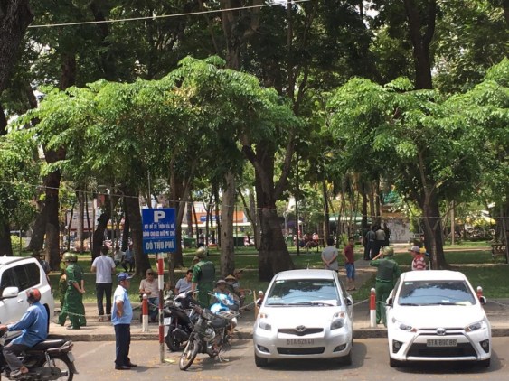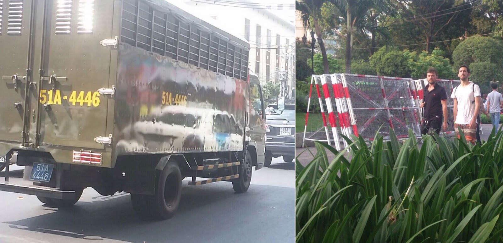 Sáng 15/5/2016, các lực lượng đàn áp được huy động tràn ngập tại khu vực trung tâm thành phố. Các ngã tư, giao lộ tại tuyến phố đi bộ Nguyễn Huệ, chợ Bến Thành, công viên Quách Thị Trang… đều có chốt chặn, an ninh thường phục trà trộn khắp nơi.
