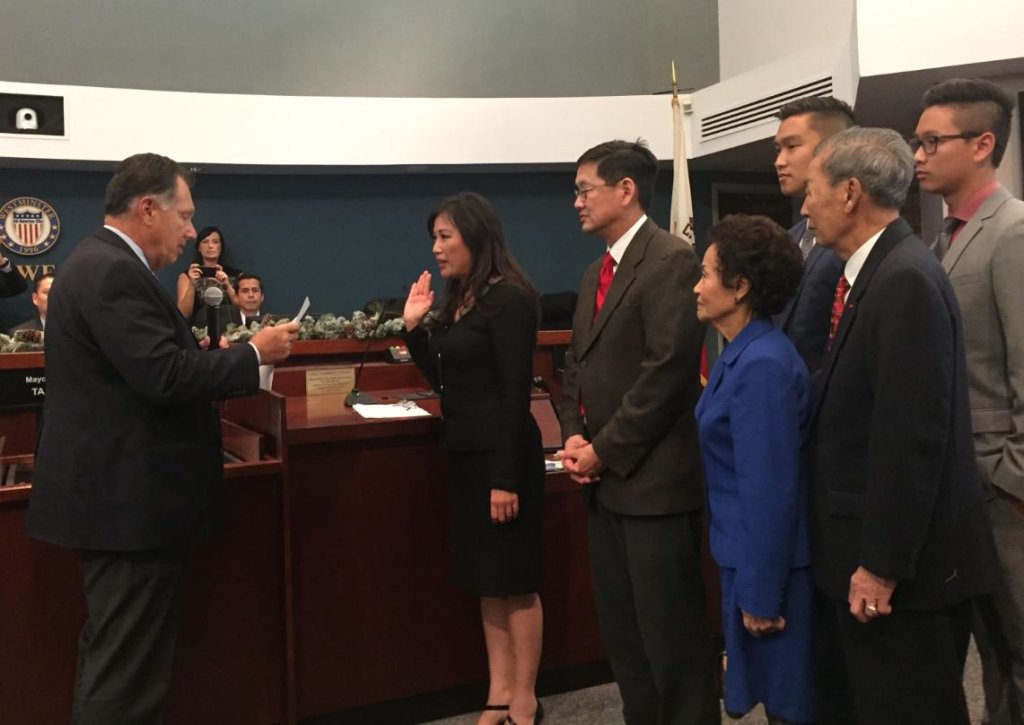 December 14, 2016 http://www.nguoi-viet.com/little-saigon/westminster-thong-qua-nghi-quyet/ Ông Tony Rackauckas (trái) chủ tọa lễ tuyên thệ nhậm chức cho tân Nghị Viên Kimberly Hồ. (Hình: Quốc Dũng/Người Việt) WESTMINSTER, California (NV) – Hội Đồng Thành Phố Westminster vừa thông qua nghị quyết cấm cờ Cộng Sản, với số phiếu 5-0, trong phiên họp tối Thứ Tư, 14 ThángĐọc tiếp “Westminster thông qua nghị quyết cấm cờ CSVN; tuyên thệ tân nghị viên”