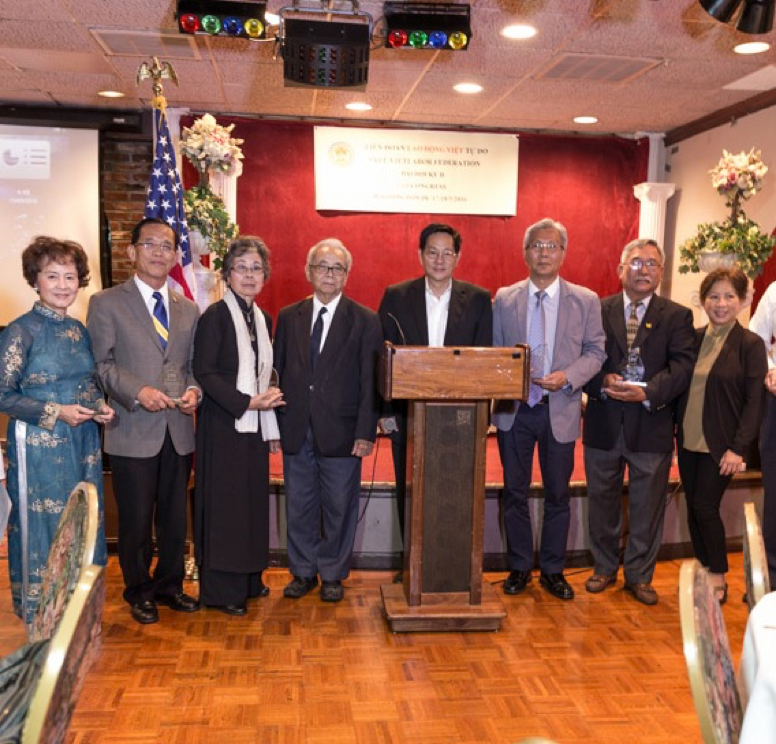 Thứ trưởng bộ Ngoại giao CsVN kiêm Chủ tịch Ủy ban Nhà nước về Người Việt tại nước ngoài Vũ Hồng Nam và phái đoàn chụp hình với kiều bào tại tại một buổi vận động chính trị tại Hoa Kỳ